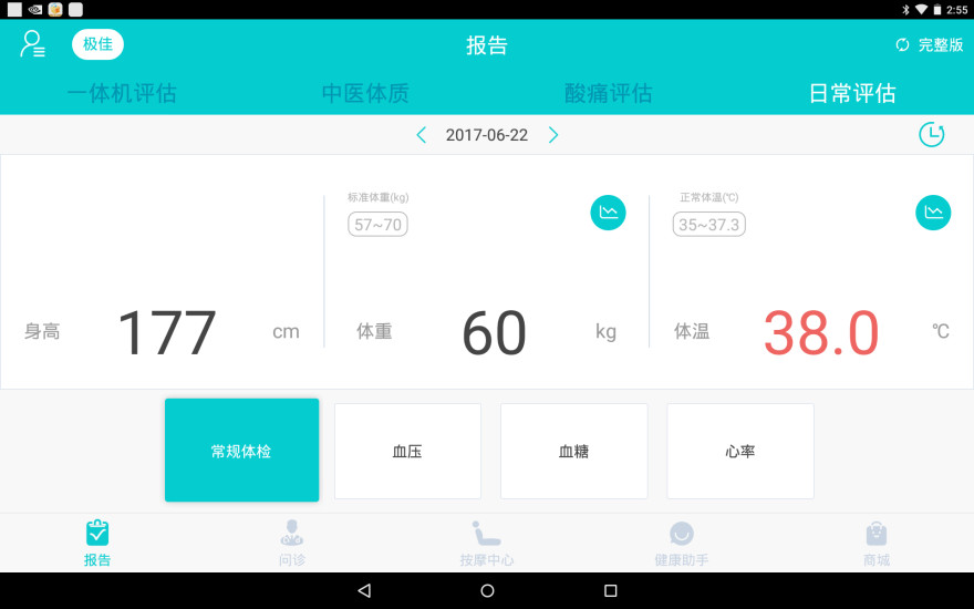 1、康美健康管家HD提供了全面的健康数据记录功能,用户可以方便地记录自己的血压、血糖、体重等健康数据,并通过图表展示,帮助用户更直观地了解自己的健康状况。