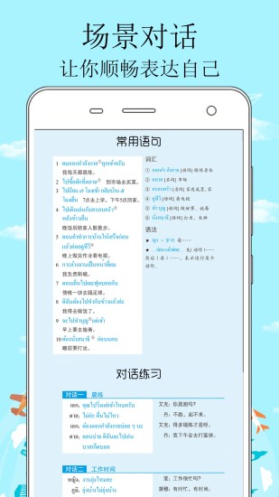 2、该APP内置了大量实景对话练习,用户可以在模拟的真实场景中进行泰语口语训练,提升语言运用能力。