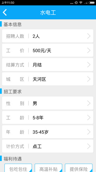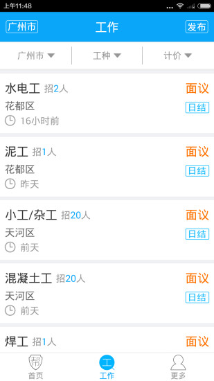 1、工人帮APP提供实时岗位更新功能,用户可以随时浏览最新的招聘信息,根据自身技能和需求筛选合适的工作机会。