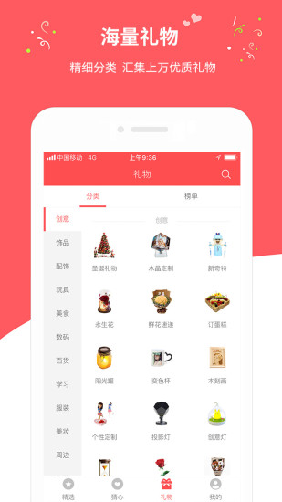 1、口袋礼物APP提供了丰富的礼物分类,包括但不仅限于时尚配饰、创意家居、美味佳肴等,满足不同人群的需求。