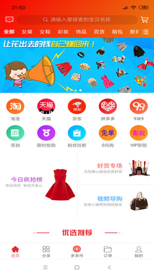1、广泛的电商平台覆盖:惠多多APP与众多知名电商平台合作,为用户提供丰富的购物选择和优惠信息。