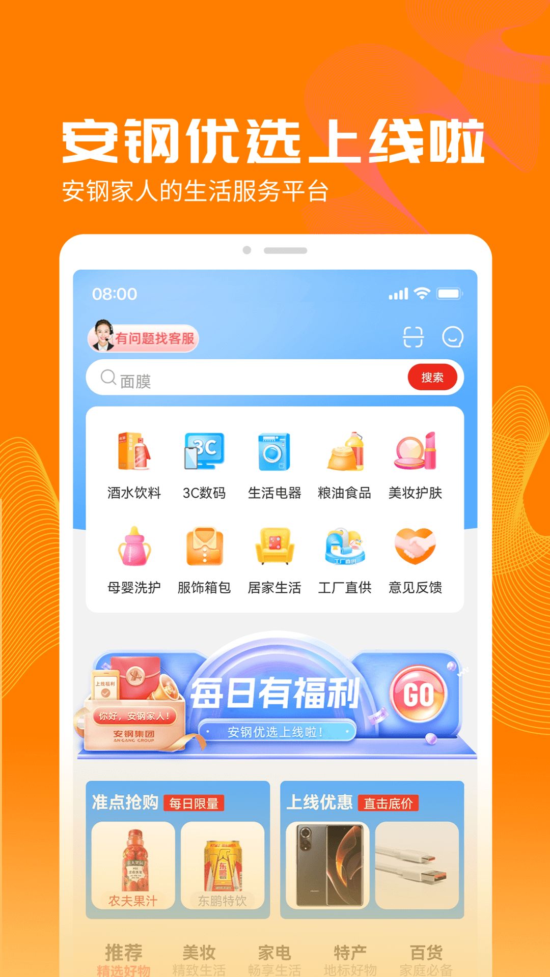 1、"安钢优选" APP的界面设计简洁大方,操作流畅,使用户能够快速上手并享受便捷的购物体验。