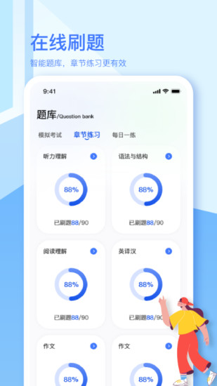 3、APP还提供在线测试和模拟考试功能,帮助用户检验学习成果,及时调整学习策略。