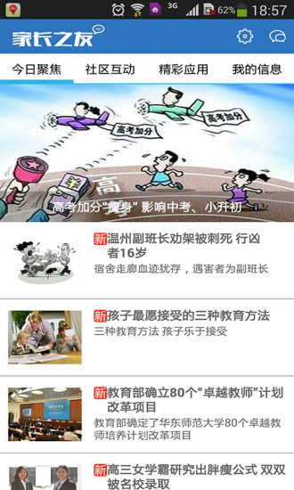 1、家长天地APP提供了丰富的教育资讯,包括最新的教育理念、方法以及各类学习资源的推荐,帮助家长更好地指导孩子学习。