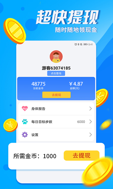 1、"天天健走"具备精准的运动数据记录功能,无论是步数、行走距离,还是运动时长、消耗卡路里,都能一一记录,为用户提供全面的运动数据分析。