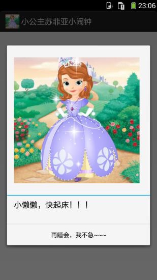 小公主苏菲亚小闹钟是一款专为儿童设计的趣味闹钟APP,它以动画形象小公主苏菲亚为主题,不仅具有叫醒功能,还融入了丰富的互动元素,让孩子在愉快的氛围中开始新的一天。