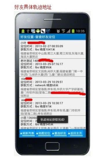 2、历史轨迹查询:该APP还具备记录用户历史轨迹的功能,用户可以查看自己或好友过去一段时间内的移动轨迹。