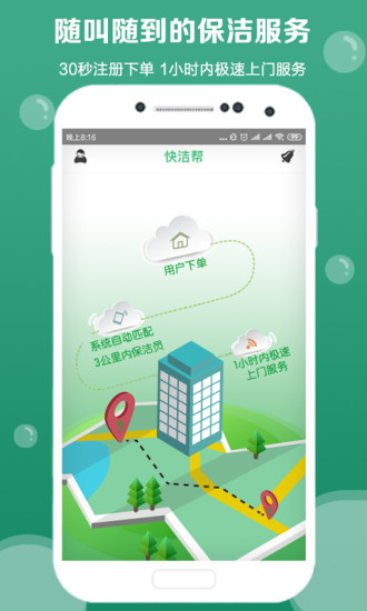 1、快洁帮APP拥有广泛的覆盖范围,无论您身处何地,都能快速找到附近的服务人员,满足您的紧急需求。