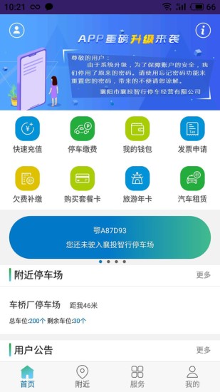 1、"襄阳停车"APP界面简洁明了,操作简单易懂,用户即使是初次使用也能快速上手。