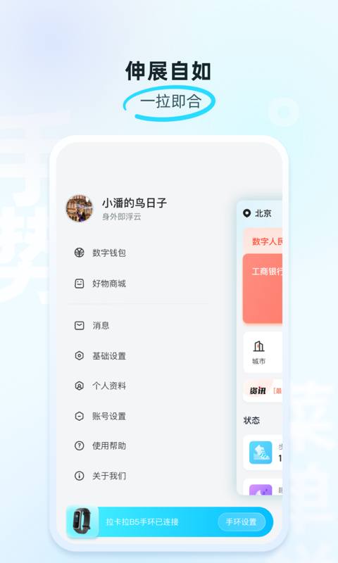 拉卡拉手环APP是一款与拉卡拉手环硬件配合使用的智能应用软件,旨在为用户提供便捷、智能的健康管理与支付体验。通过蓝牙连接手环,APP能实时监测心率、步数等健康数据,同时支持手环支付功能,让用户的健康生活更加智能化。