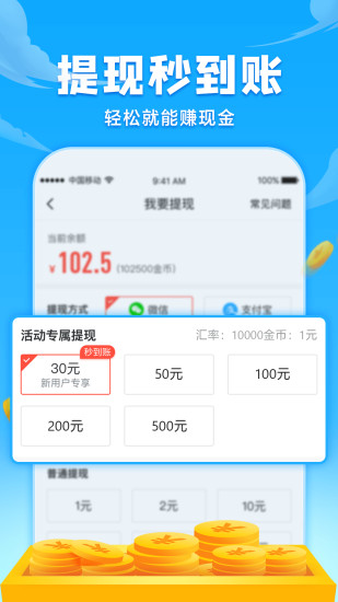1、步步生金:开心步步赚的核心功能是将用户的步数转换成积分,每走一步都在为用户积累财富。
