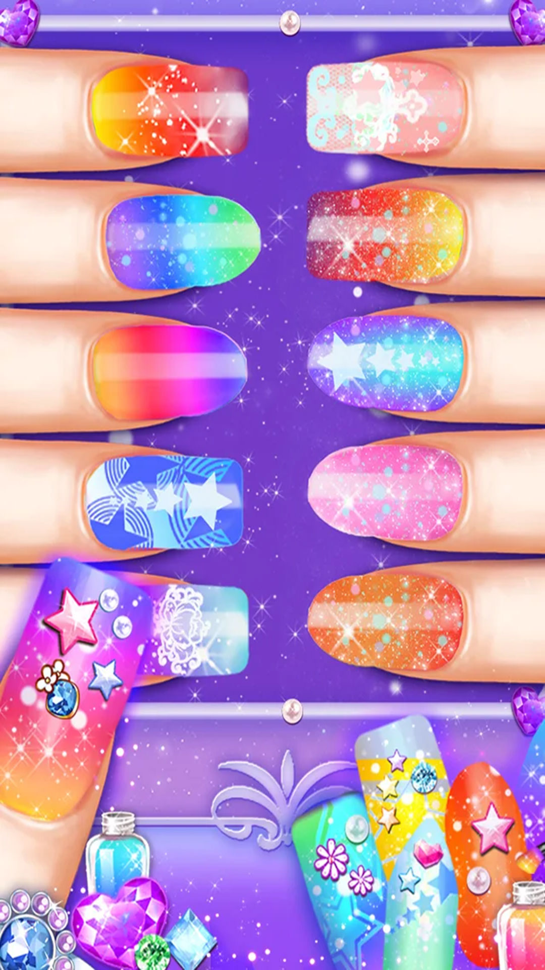1、公主装扮时尚美甲APP提供了丰富的美甲图案供用户选择,从经典法式到炫彩图案,应有尽有,满足不同用户的个性化需求。
