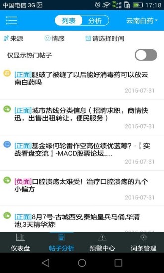 1.修改1.0版本闪退的bug;2.修改1.0版本帖子列表当中来源、情感的显示图标;3.修改1.0版本情感分析准确度与PC端一致的bug;