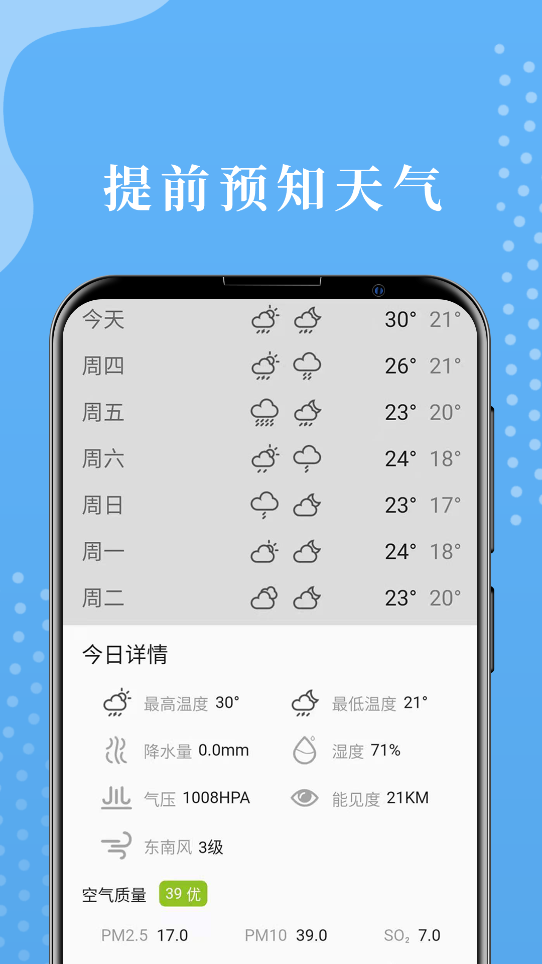 2、未来天气预报:应用提供未来几天的天气预报,帮助用户提前了解天气变化,做好出行准备。