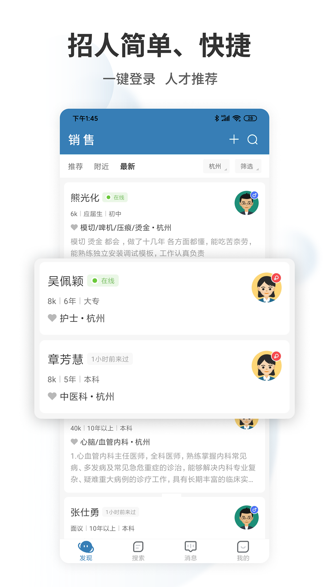 1、杭州直聘APP专注于杭州地区的招聘信息,为本地求职者提供了精准的岗位匹配服务。