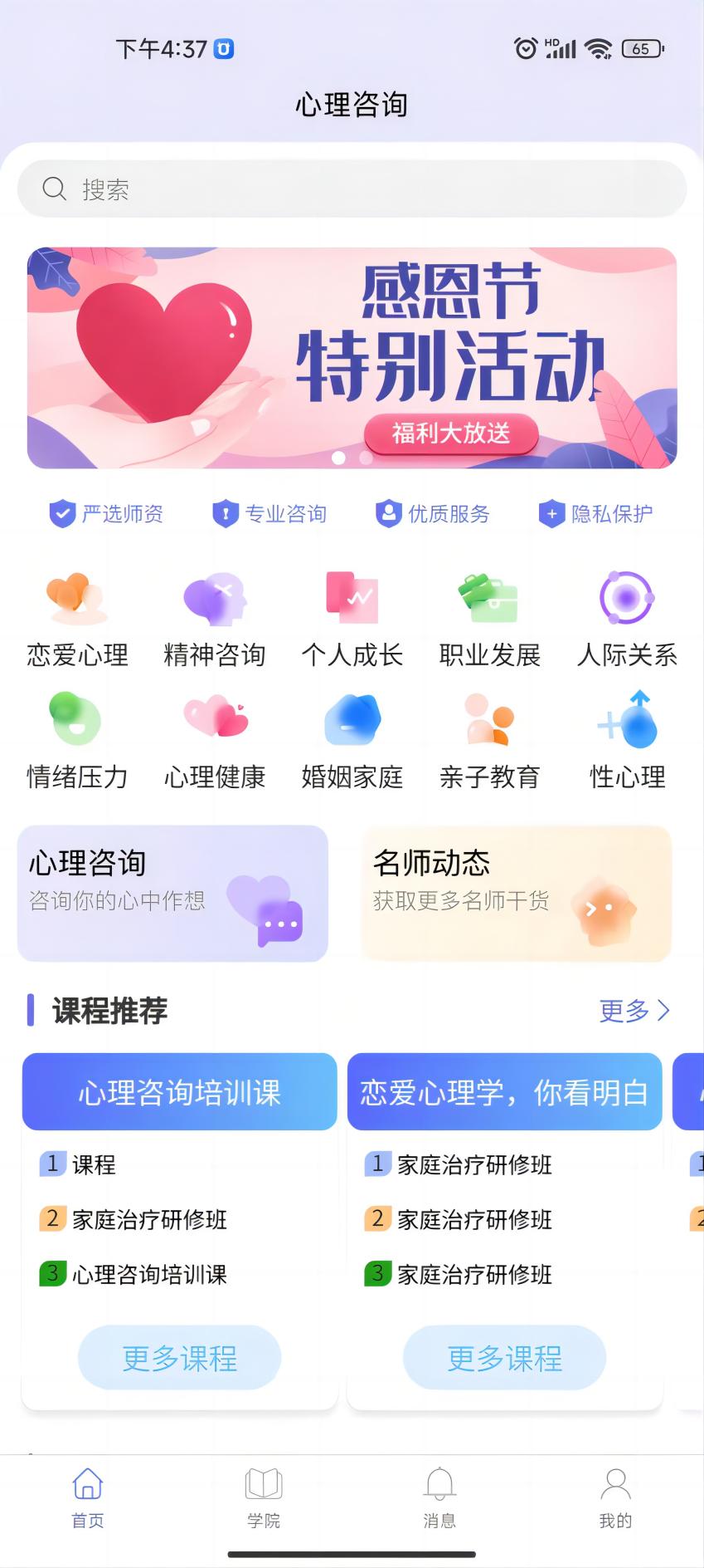 2、应用内的心理辅导课程由资深心理专家亲自授课,保证教学质量。