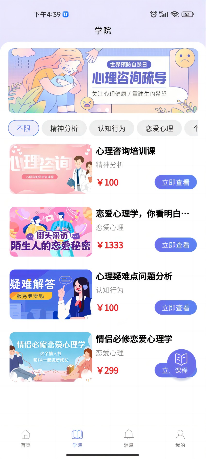 3、APP还提供定制化心理辅导课程,帮助用户根据自身需求进行系统的心理健康学习。
