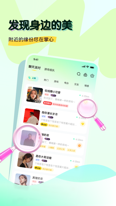1、奶兔交友提供了多样化的交友方式,包括附近的人、兴趣小组、语音聊天室等,满足你不同的社交需求。