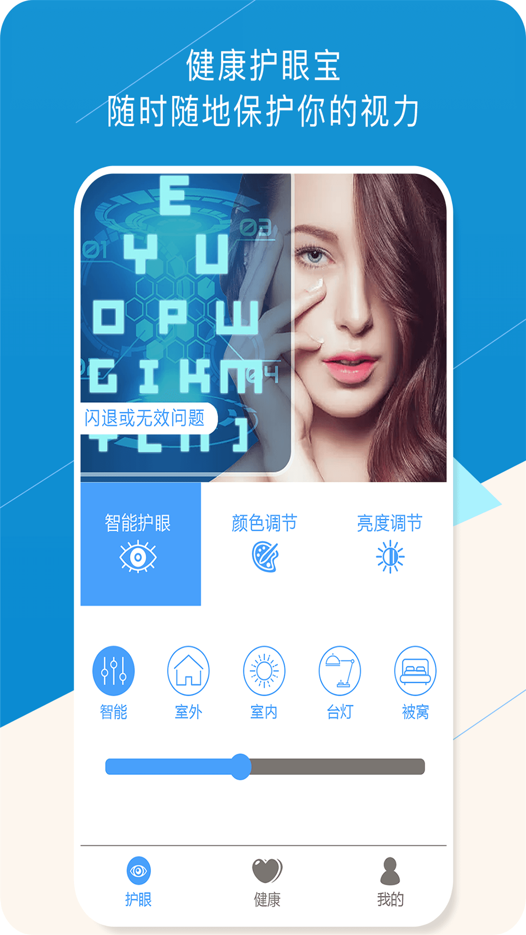 健康护眼宝是一款专注于保护用户视力的手机应用。它通过科学的方法和技术手段,帮助用户减轻长时间使用手机对眼睛造成的伤害,提供舒适的视觉体验。该应用汇集了多种护眼模式,可根据不同环境和需求进行个性化设置,有效缓解眼部疲劳,保护视力健康。