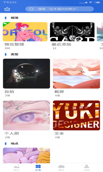 1、智能分类:手机相册管家通过先进的图像识别技术,能够自动将照片按照人物、风景、活动等类别进行分类,方便用户快速找到想要的照片。