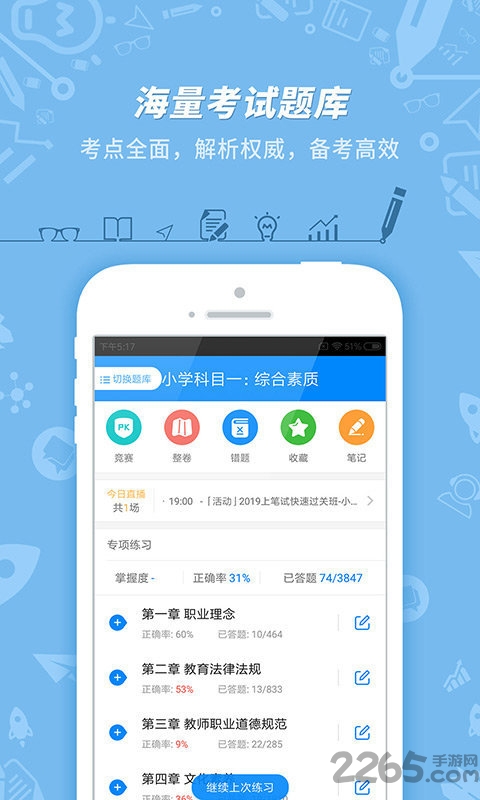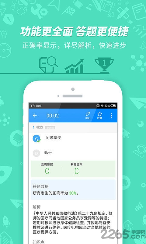 3、在线测评:悦考官方版提供丰富的在线测评功能,包括章节测验、模拟考试等,帮助用户及时了解自己的学习成果和薄弱环节,为下一步学习提供指导。