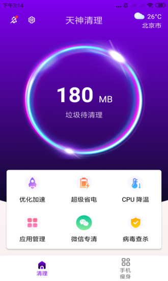 天神清理是一款专注于手机清理与优化的应用软件,旨在帮助用户轻松管理手机内存,提升设备性能。通过一键清理功能,它能迅速释放手机存储空间,加速手机运行速度,让您的手机焕发新生。