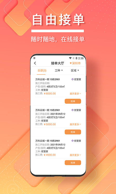 无忧工匠APP,一款专为手工艺爱好者和专业工匠打造的综合性服务平台。通过这个APP,用户可以轻松获取各种手工艺品的制作教程,还能在线购买所需材料和工具。同时,无忧工匠也提供了一个交流社区,让用户们可以分享自己的作品和经验,相互学习,共同进步。