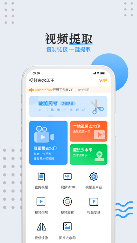 2、除了去水印,该APP还具备视频剪辑、合并、转码等多项功能,满足用户一站式视频处理需求。