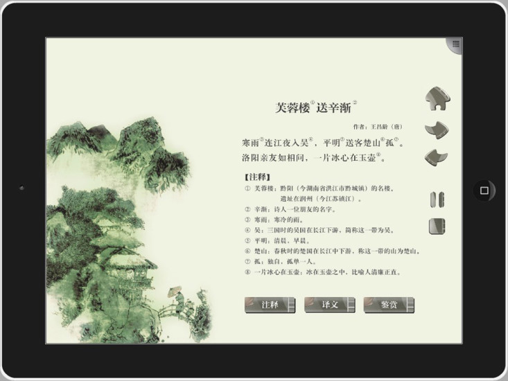 2、APP内的古诗词均配有精美的插图,图文并茂,让用户更加沉浸在古诗词的美妙世界中。