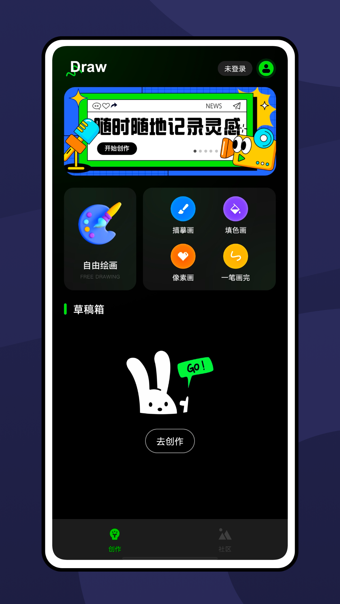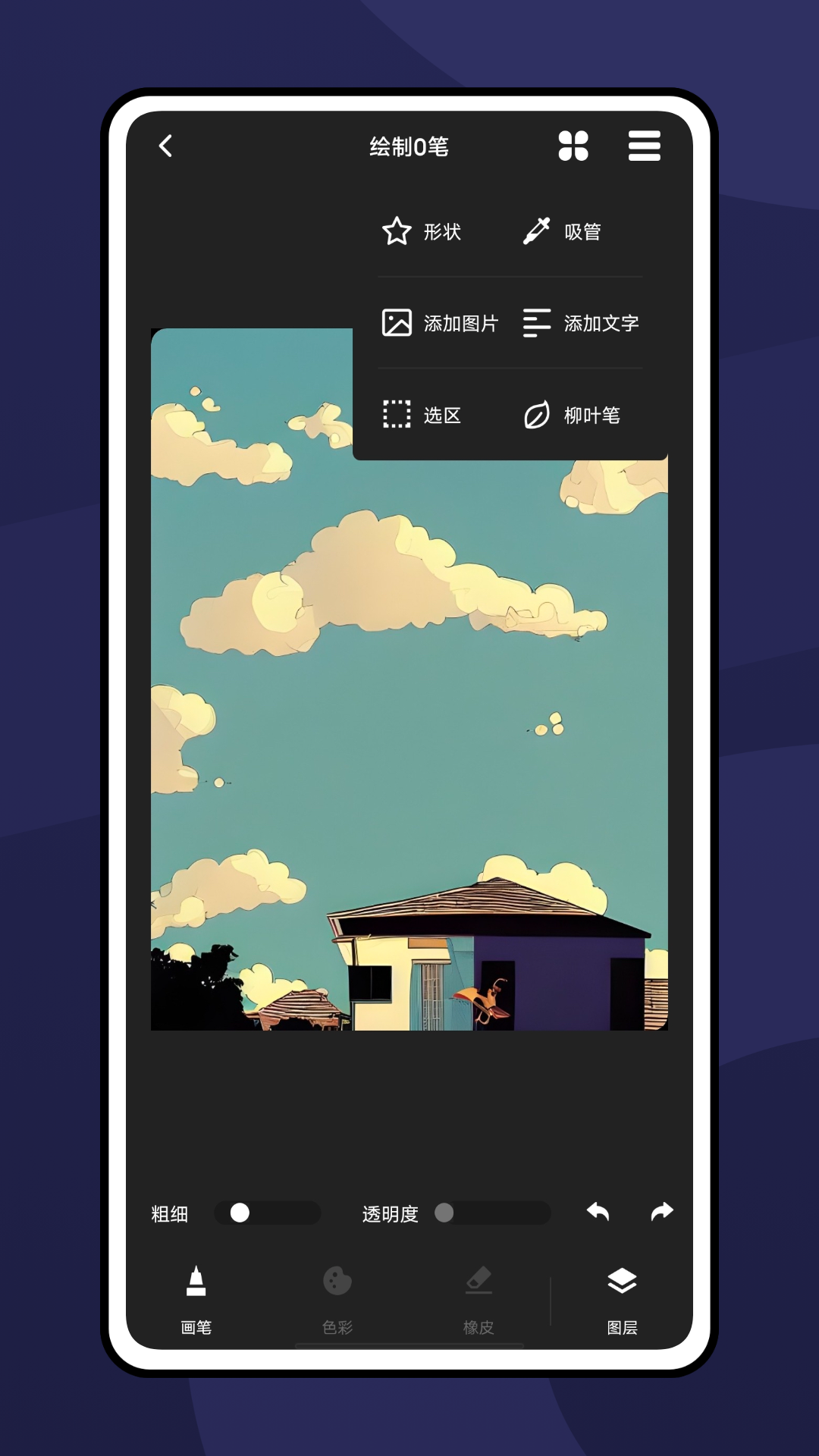2、该APP支持多种画布尺寸和分辨率选择,满足不同场景下的创作需求。