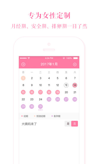 2、安全期预测:基于用户输入的周期信息,APP能智能分析并提示用户的安全期,帮助女性更好地了解自己的身体状况。