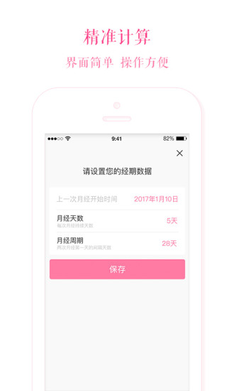 1、周期跟踪:用户只需输入最近一次月经的第一天日期和平均月经周期,安全期计算器就能精准预测未来的月经时间。
