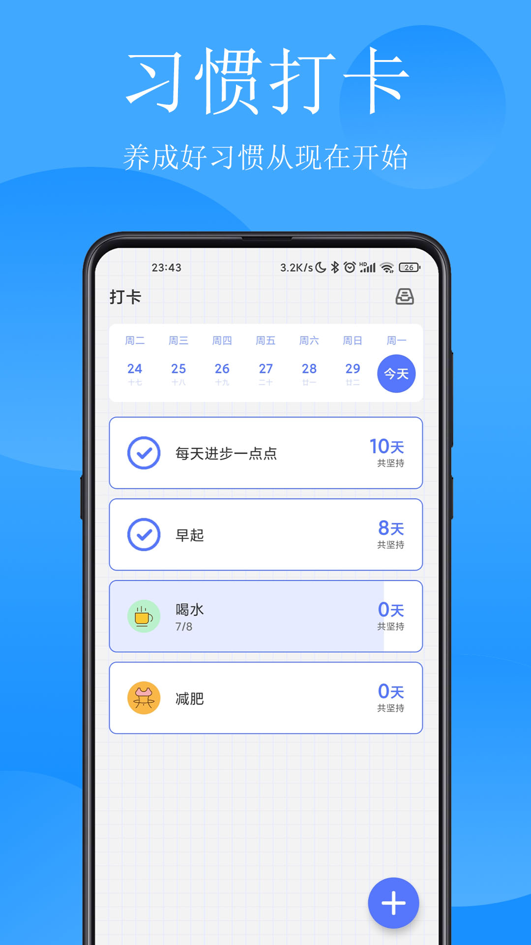 2、打卡记录:提供丰富的打卡模板,支持用户设定个性化打卡任务,如健身打卡、学习打卡等,助力习惯养成。