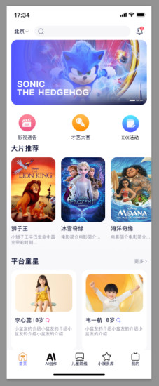 1、儿童电影网APP注重儿童观影体验,界面设计简洁明了,图标和按钮都采用了适合儿童的卡通风格,让孩子们爱上这款APP。