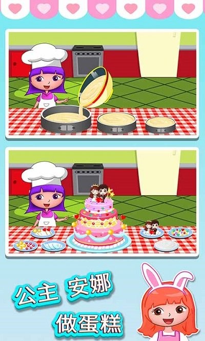 公主安娜做蛋糕是一款围绕童话烘焙主题打造的休闲模拟游戏,玩家进入城堡甜品工坊后参与蛋糕制作与装饰流程,按照顾客订单完成原料准备、搅拌烘焙与造型设计等步骤,多种蛋糕基底与装饰素材组合制作不同风格甜品,随着进度推进解锁新食谱与装饰内容,在轻松氛围中体验完整蛋糕创作过程与童话剧情发展。