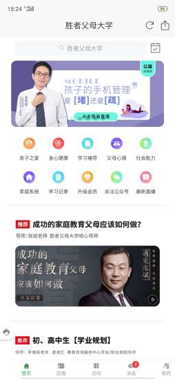 1、胜者父母大学APP的界面设计简洁明了,操作便捷,即使是不太擅长使用智能手机的家长也能轻松上手。