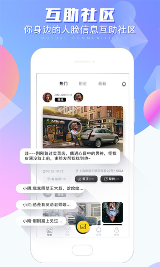 脸寻APP,一款基于人脸识别技术的智能寻人应用。通过高效的算法和庞大的数据库,脸寻帮助用户迅速定位并联系到目标人物,无论是寻找失散多年的亲人,还是寻找志同道合的朋友,脸寻都能为您提供准确、快捷的服务。
