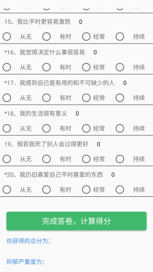 1、抑郁症自测量表:APP提供专业的抑郁症自测量表,用户可以根据量表中的问题进行自我评估,了解自己的心理健康状况。