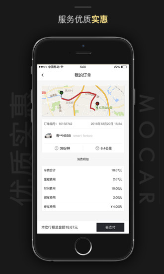 1、Mocar界面简洁易用,操作流畅,用户可以快速找到自己需要的功能和信息。