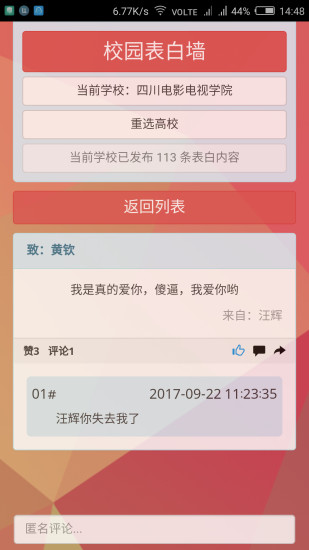 1、表白墙:学生可以在此发布自己的心意,无论是暗恋还是明恋,都能找到一个表达的窗口。同时,这也是一个发现校园内潜在恋情的好地方。