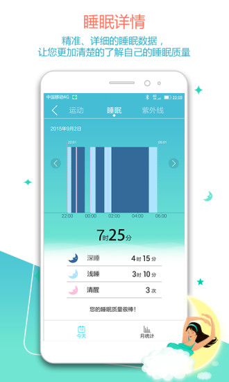 3、智能闹钟功能:APP内置的智能闹钟可以根据用户的睡眠周期,在浅睡眠期间温柔唤醒用户,让起床变得更加轻松。