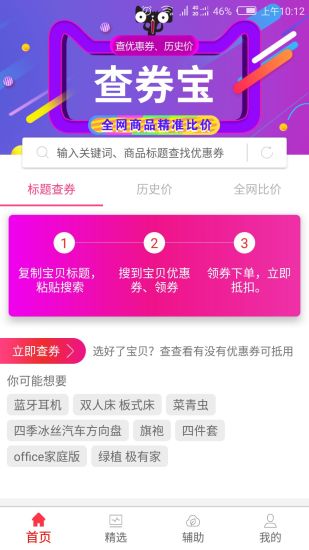 1、"查券宝"提供了强大的优惠券搜索功能,用户只需输入关键词或粘贴商品链接,即可快速查找到对应的优惠券信息。