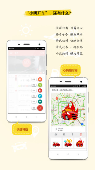 1、小明开车APP的界面设计简洁明了,操作便捷,用户可以轻松上手,无需复杂的设置即可享受智能导航服务。