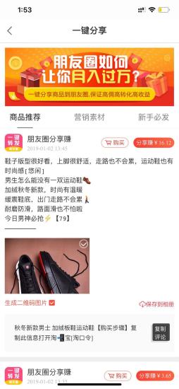 2、用户可通过APP内的分享功能,将心仪的商品链接分享给好友或社交平台,好友购买后,用户即可获得相应佣金。