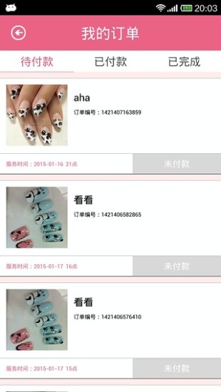 2、作品展示:技师可在APP内发布自己的美甲作品,用户可浏览并选择喜欢的款式,实现个性化美甲需求。