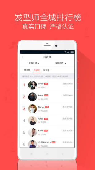 2、APP采用先进的定位技术,为用户推荐附近的优质美业店铺和技师,节省用户的搜索时间。