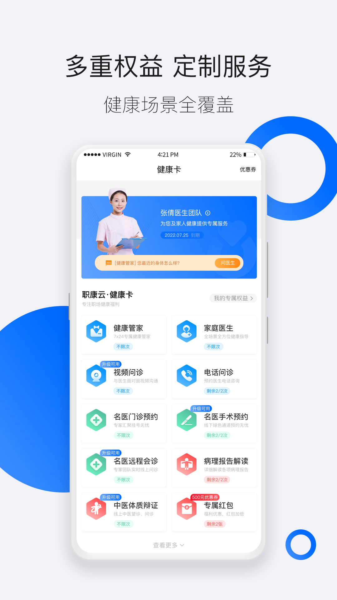 1、职康云APP专注于职场人士的健康管理,深刻理解职场人士的健康需求,提供更加贴心的服务。