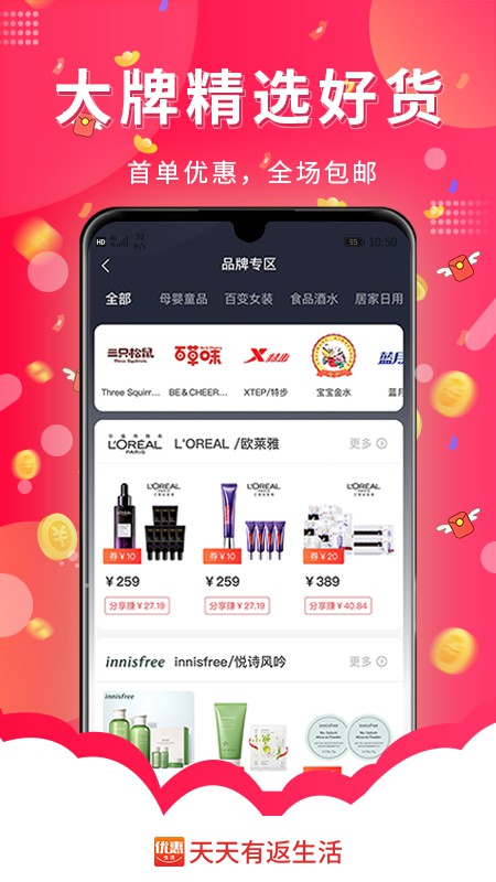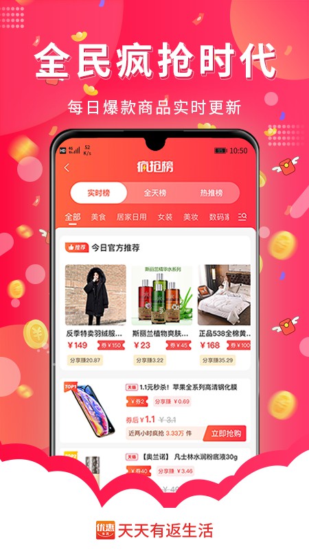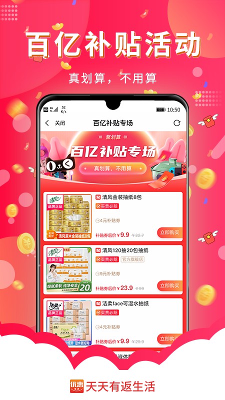 2、用户在APP内购物后,可以获得一定比例的现金返利,这种返利机制大大提升了用户的购物体验。
