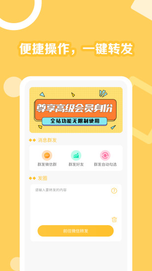 1、一键转发:朋友圈一键转发助手提供便捷的一键转发功能,用户无需复杂操作,即可将感兴趣的内容快速分享到自己的朋友圈。