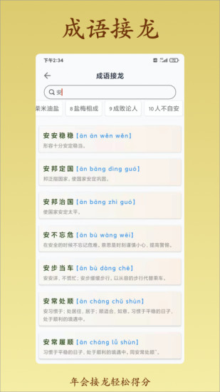 2、成语接龙:通过成语接龙游戏,用户可以在轻松愉快的氛围中巩固所学成语,提高反应能力和联想能力。